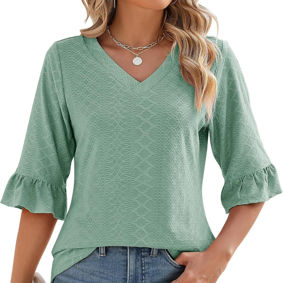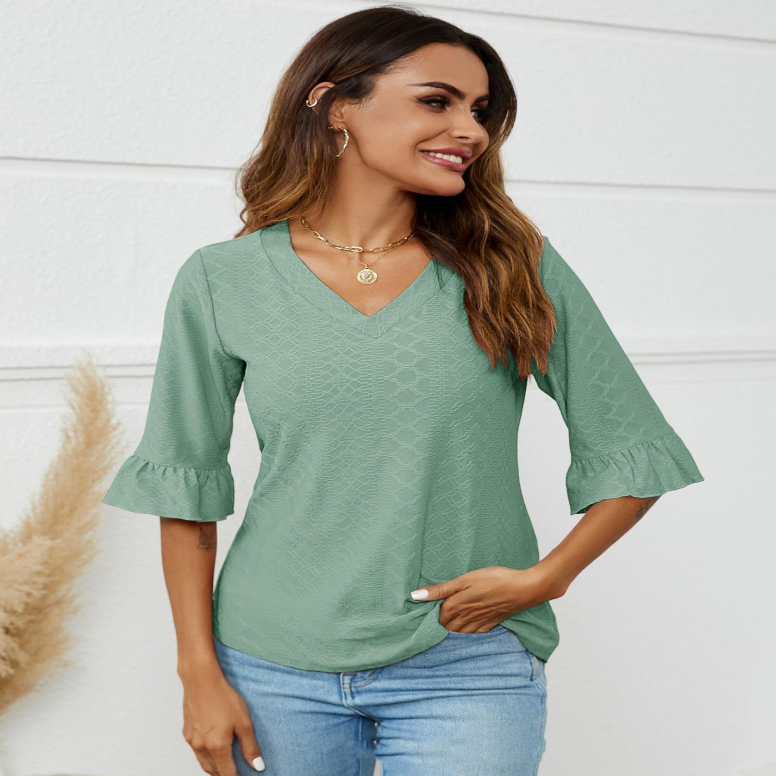 Col en V : Le col en V de ce haut vous permet de l'associer avec un collier délicat, en faisant un choix idéal pour diverses occasions telles que le bureau, un rendez-vous, le travail, une soirée, un anniversaire, ou même pour une tenue quotidienne, en extérieur, lors de vos séances de shopping ou à la maison.