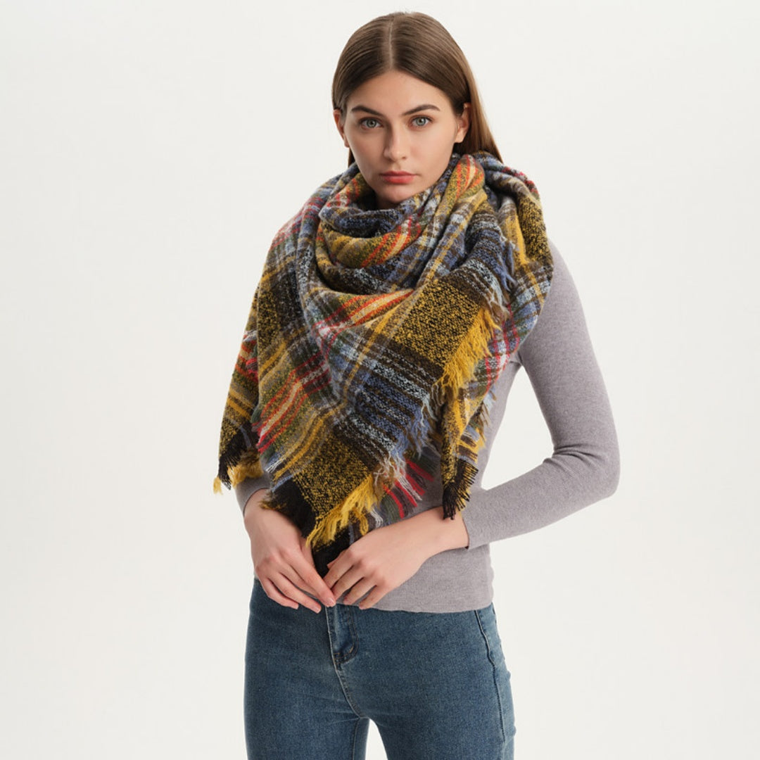 Châle écharpe (Automne Et Hiver) style "Grand Triangle à carreaux"