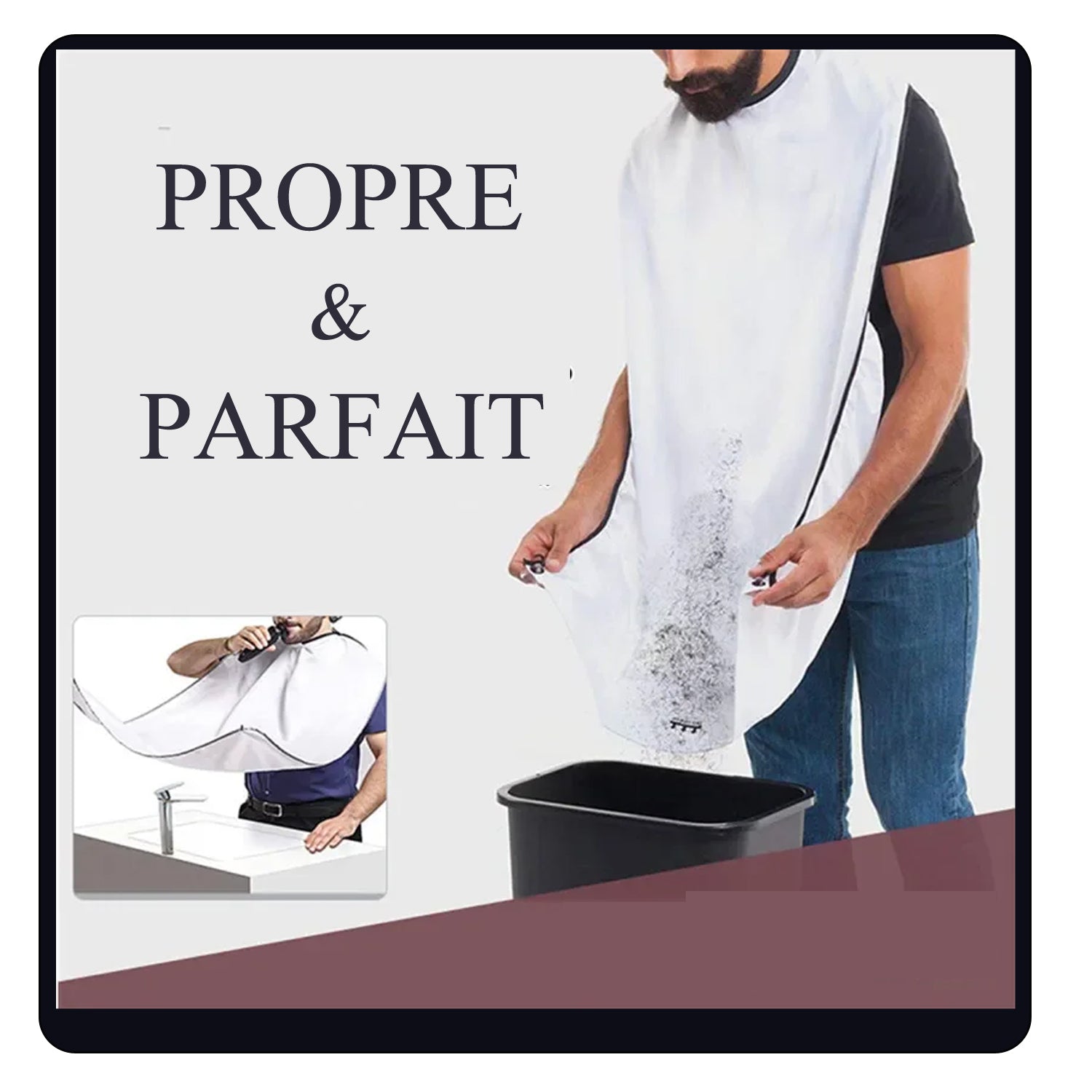 Restez Propre : Ce tablier à barbe préserve la propreté de votre espace en empêchant les poils de barbe, les côtés et les cheveux coupés de tomber dans l'évier et de bloquer les drains, vous permettant ainsi d'économiser un temps précieux de nettoyage.