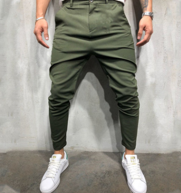 Pantalon de loisirs tissé slim de couleur unie pour hommes