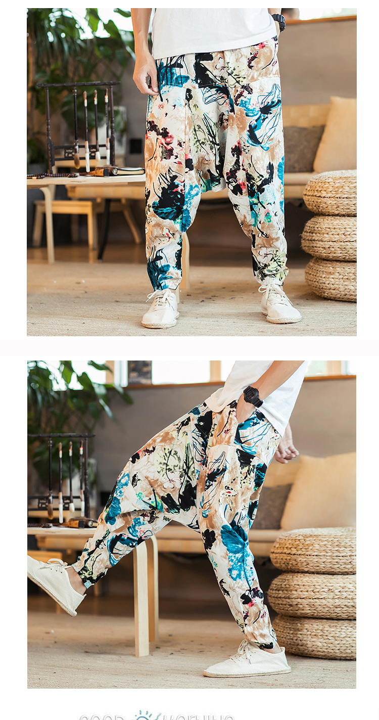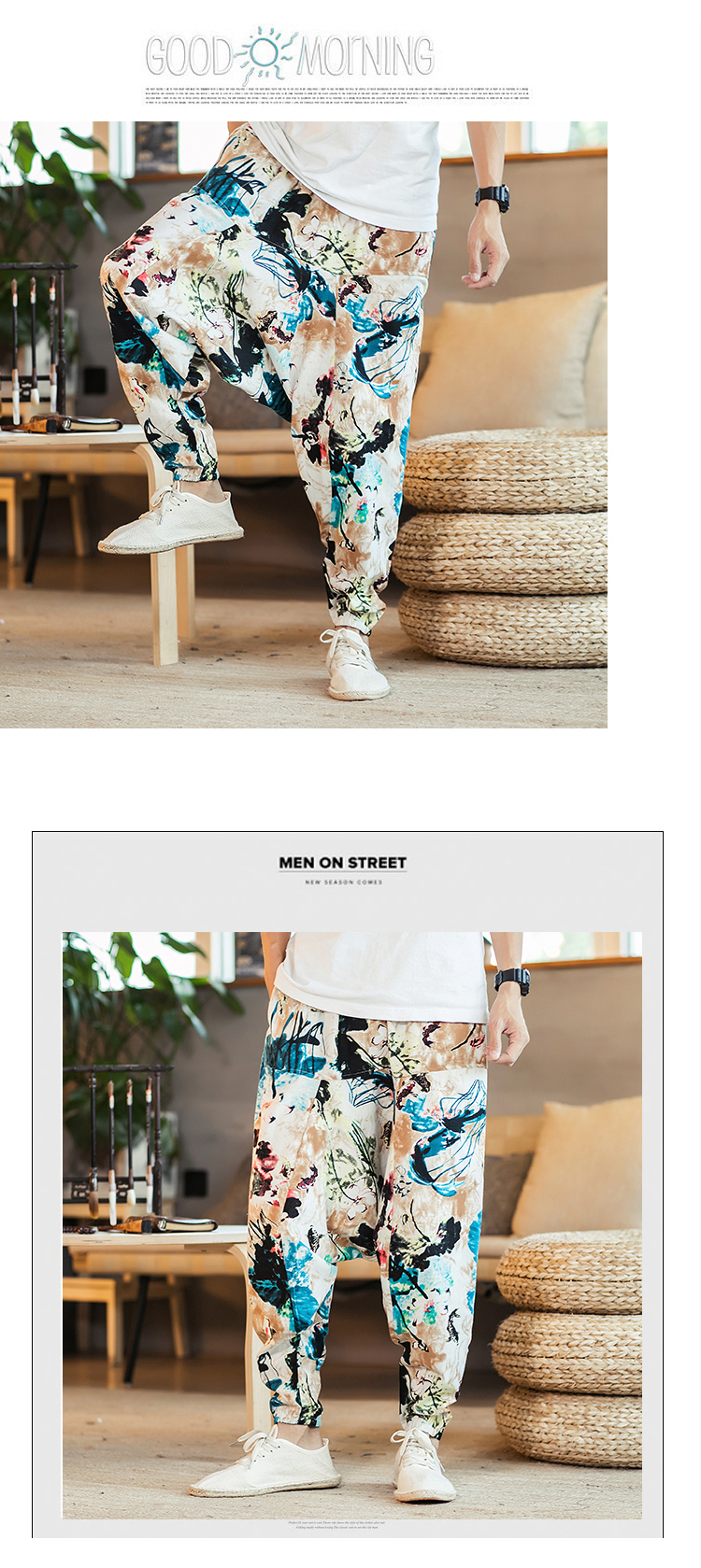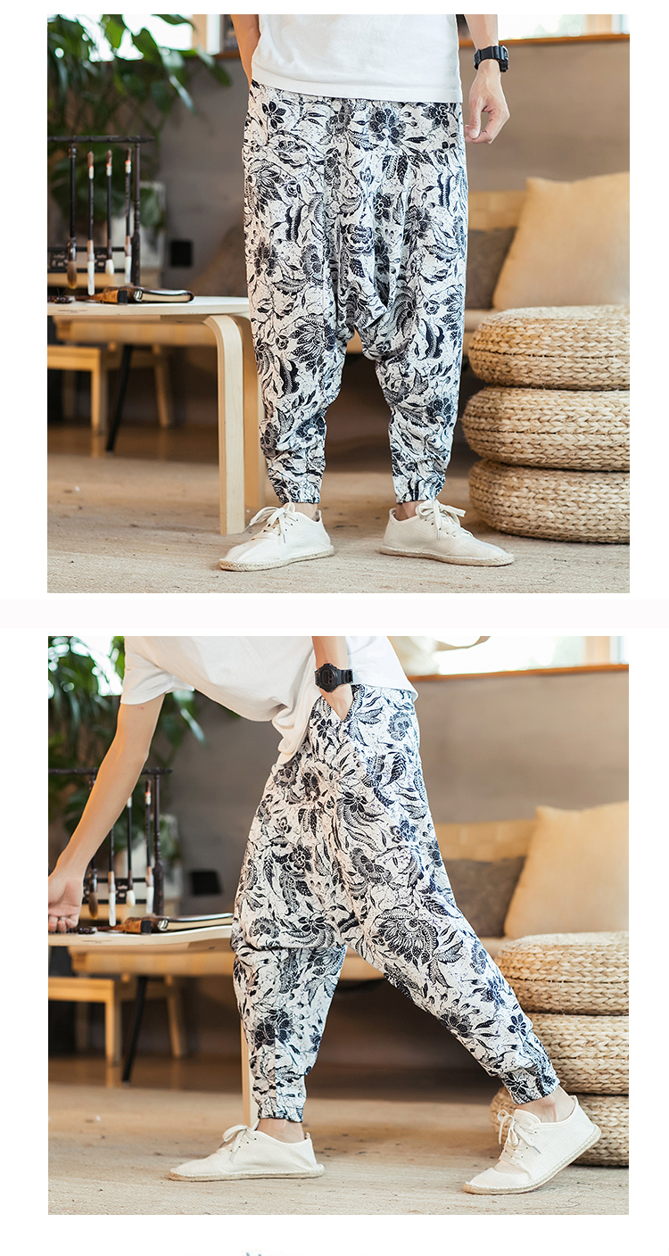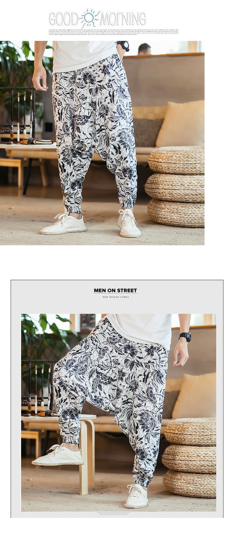 Pantalons décontractés en lin de Style National hip-hop ample pour hommes