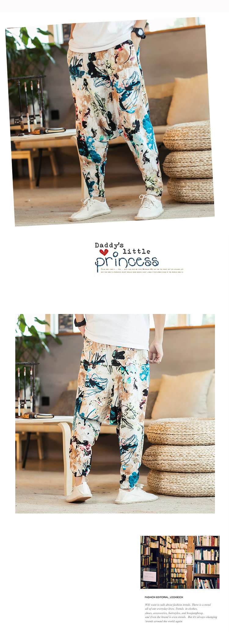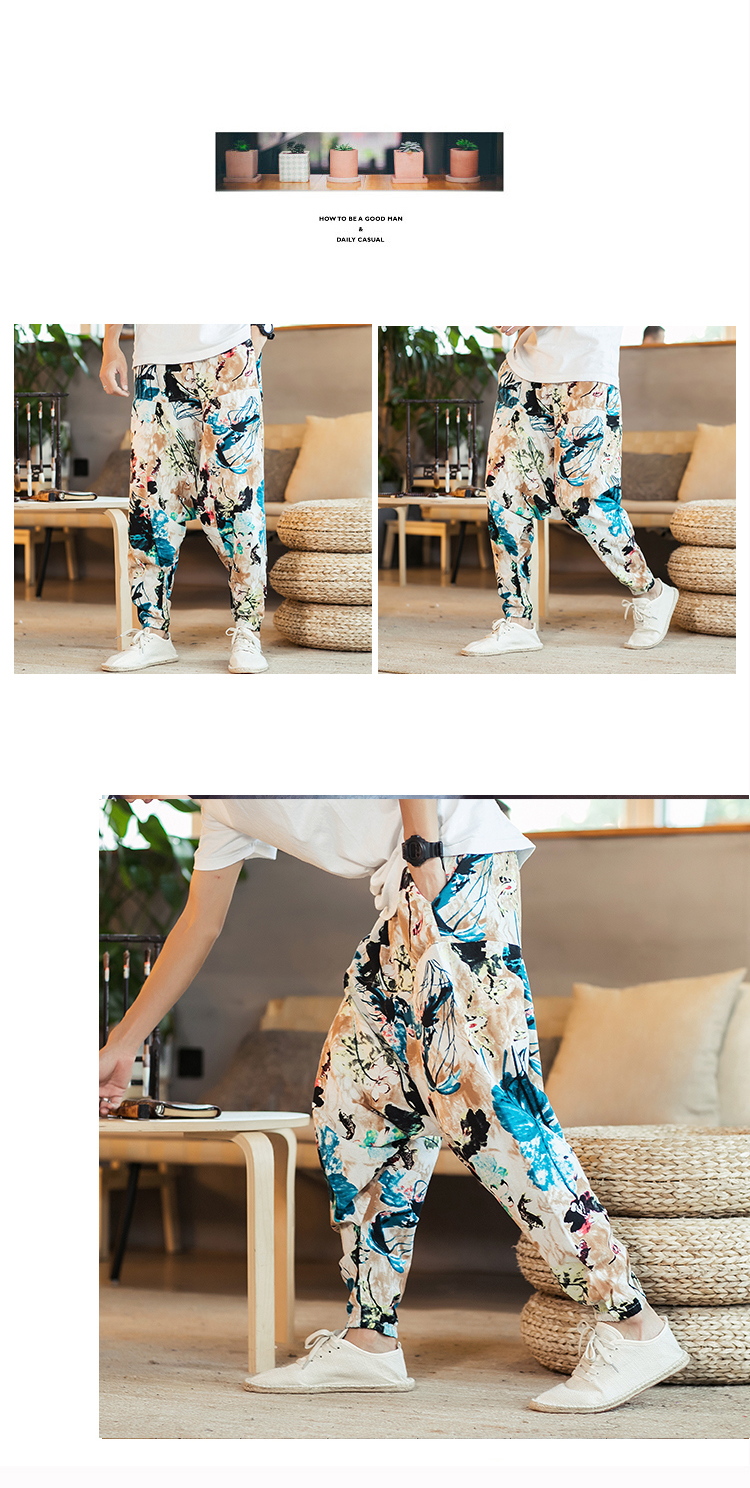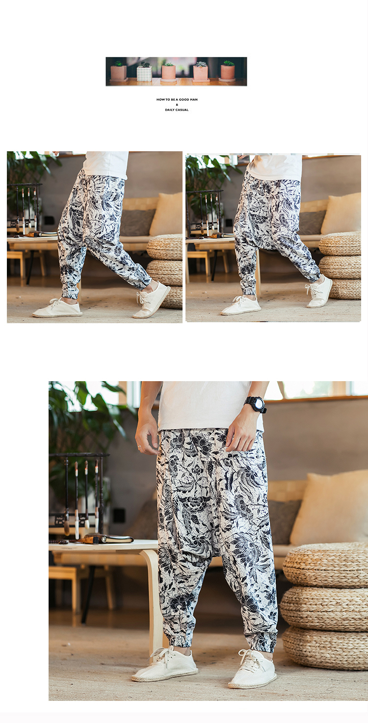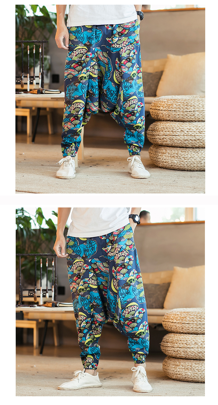 Pantalons décontractés en lin de Style National hip-hop ample pour hommes
