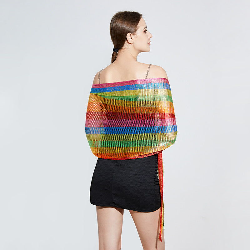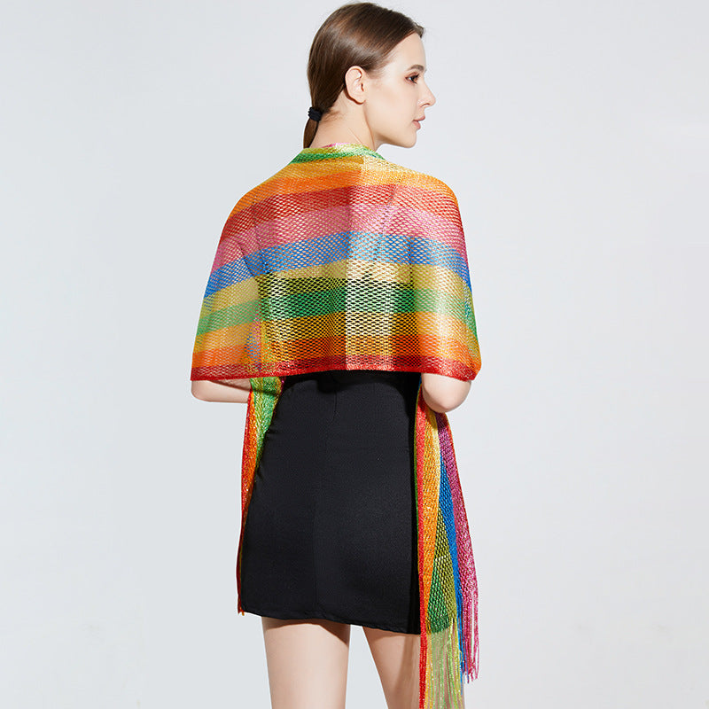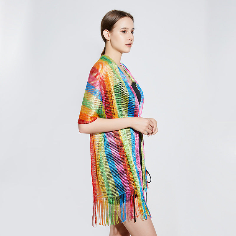 Châle de protection solaire à rayures arc-en-ciel à franges plage (sans ceinture)